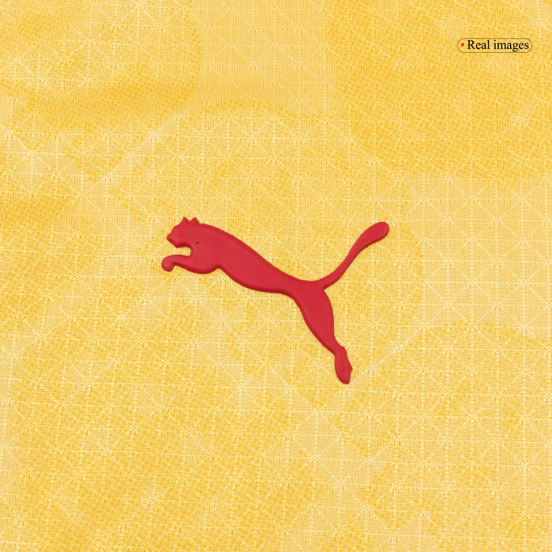 Het AC Milan Derde Shirt 2025/26 brengt een opvallend ontwerp terug, geïnspireerd op het iconische derde tenue uit 1994-96. Dit moderne AC Milan voetbalshirt heeft een levendige gele basis met subtiele geometrische patronen, gecombineerd met een donkergroene kraag die zorgt voor een luxe contrast. Op de borst prijkt trots het clublogo met de rood-zwarte strepen en het “1899”-detail, symbool van meer dan een eeuw Rossoneri-traditie.