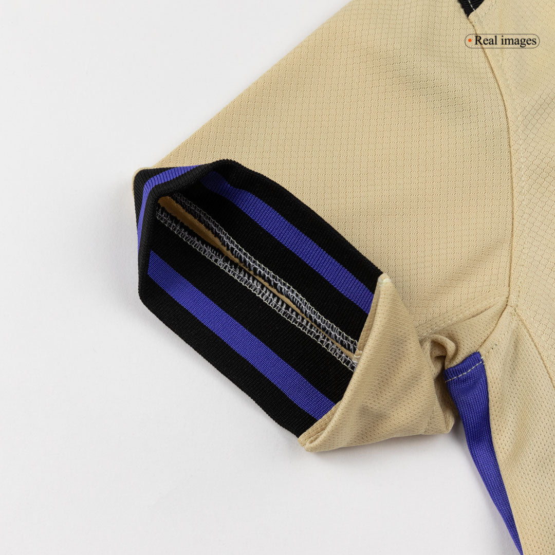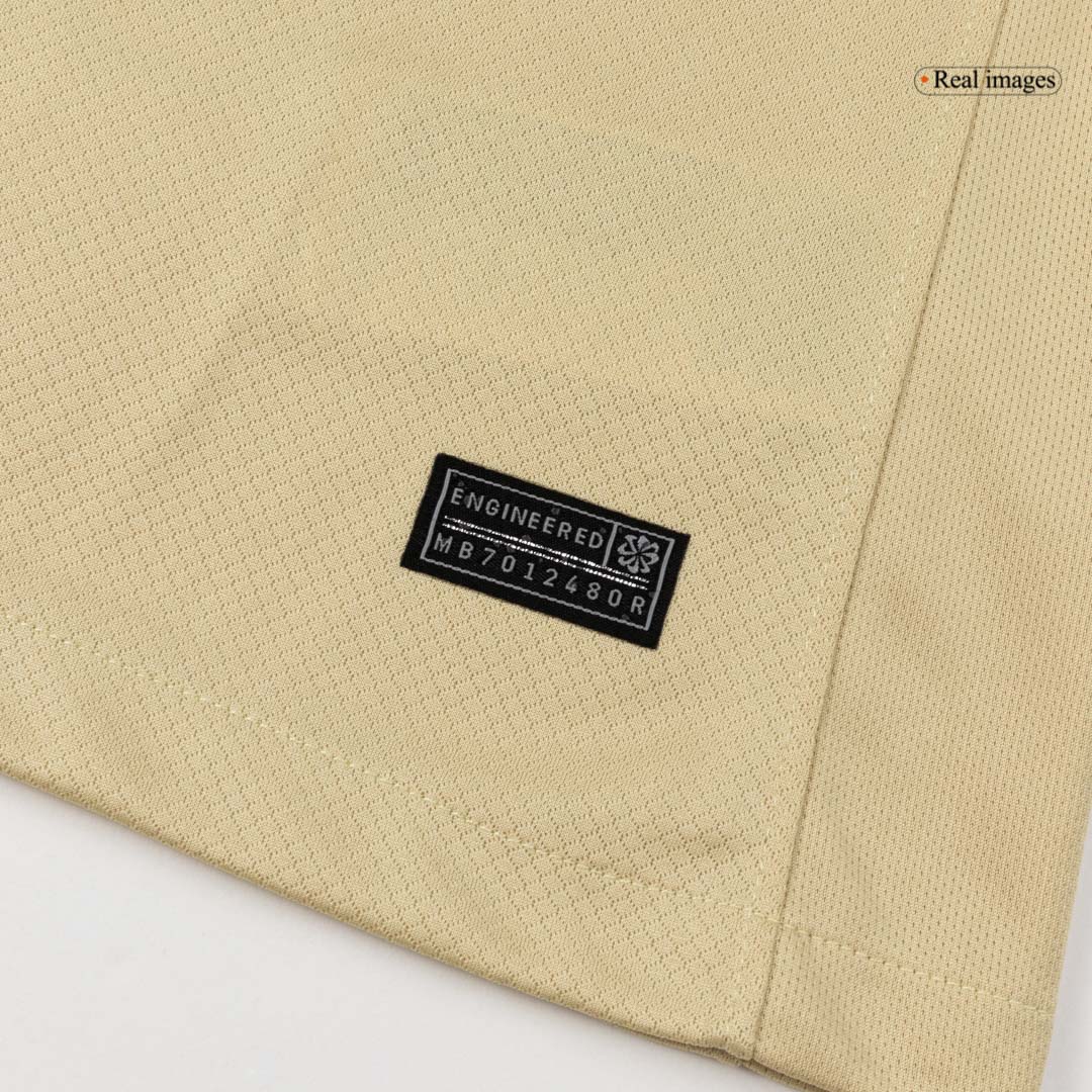 Het FC Barcelona Uitshirt 2025/26 combineert traditie met gedurfde inspiratie. Dit unieke Barcelona voetbalshirt eert Kobe Bryant én de onverzettelijke Barça-spirit. Met een opvallende Team Gold-basis en krachtige accenten in zwart en Persian Violet is dit tenue de ultieme fusie van voetbal en nalatenschap.