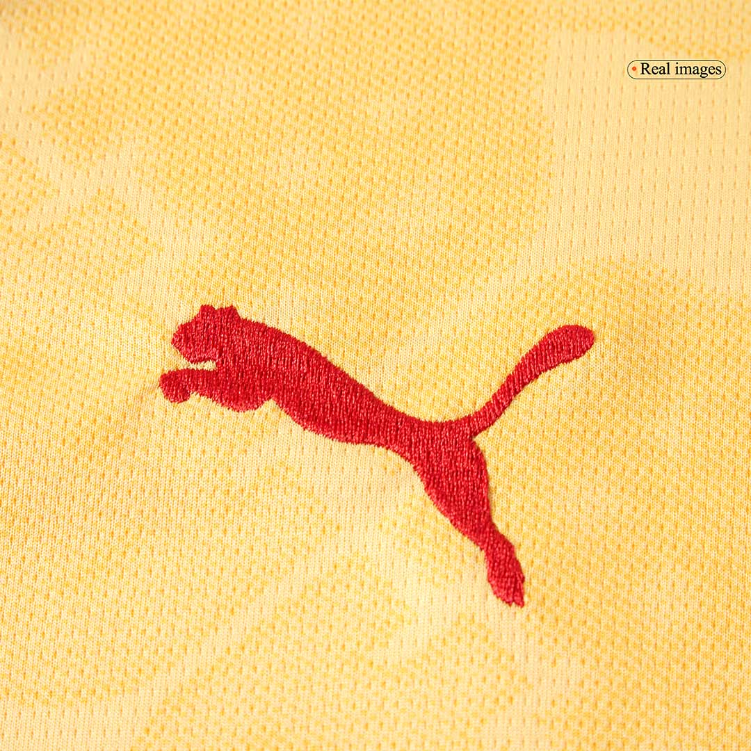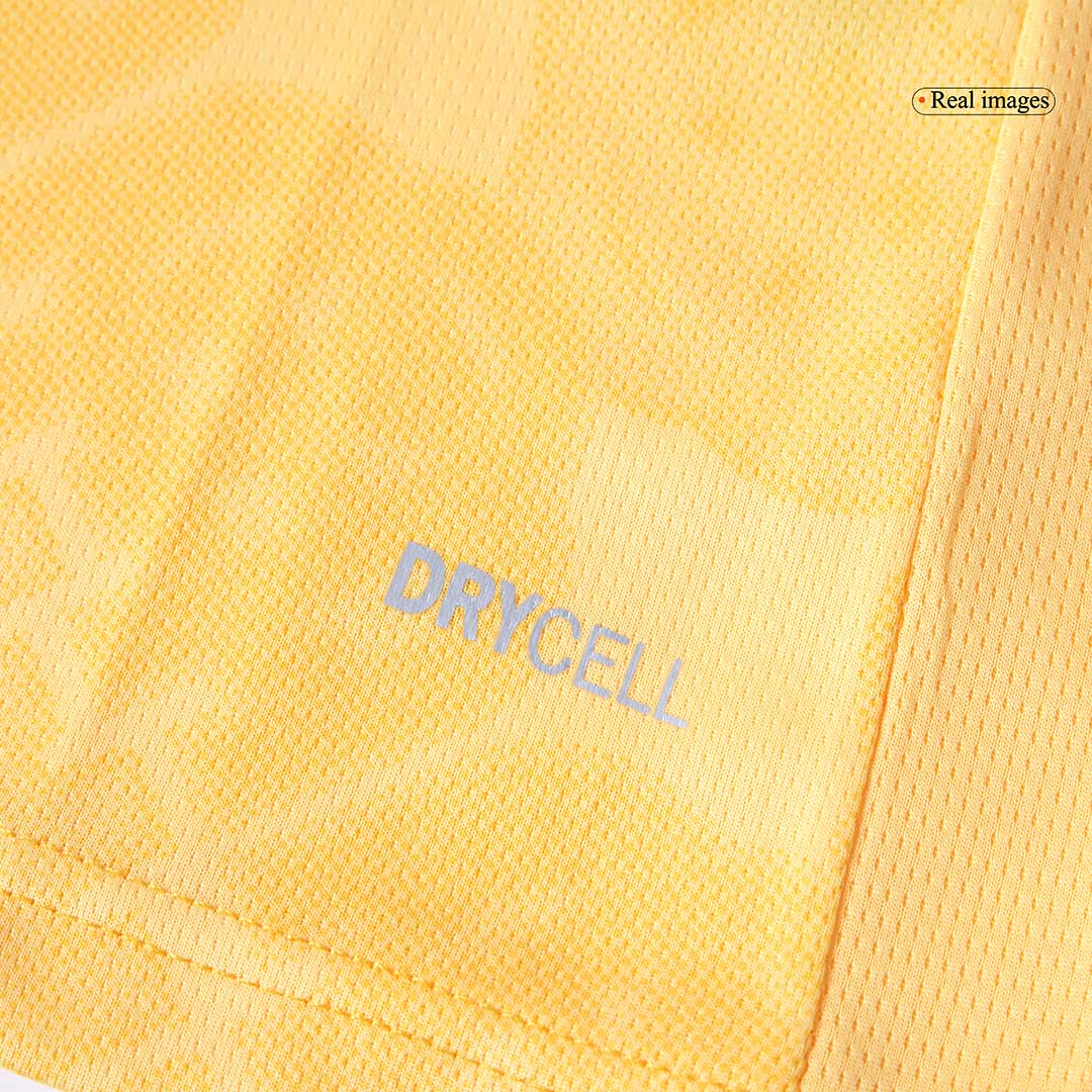 Het AC Milan Derde Shirt 2025/26 brengt een opvallend ontwerp terug, geïnspireerd op het iconische derde tenue uit 1994-96. Dit moderne AC Milan voetbalshirt heeft een levendige gele basis met subtiele geometrische patronen, gecombineerd met een donkergroene kraag die zorgt voor een luxe contrast. Op de borst prijkt trots het clublogo met de rood-zwarte strepen en het “1899”-detail, symbool van meer dan een eeuw Rossoneri-traditie.