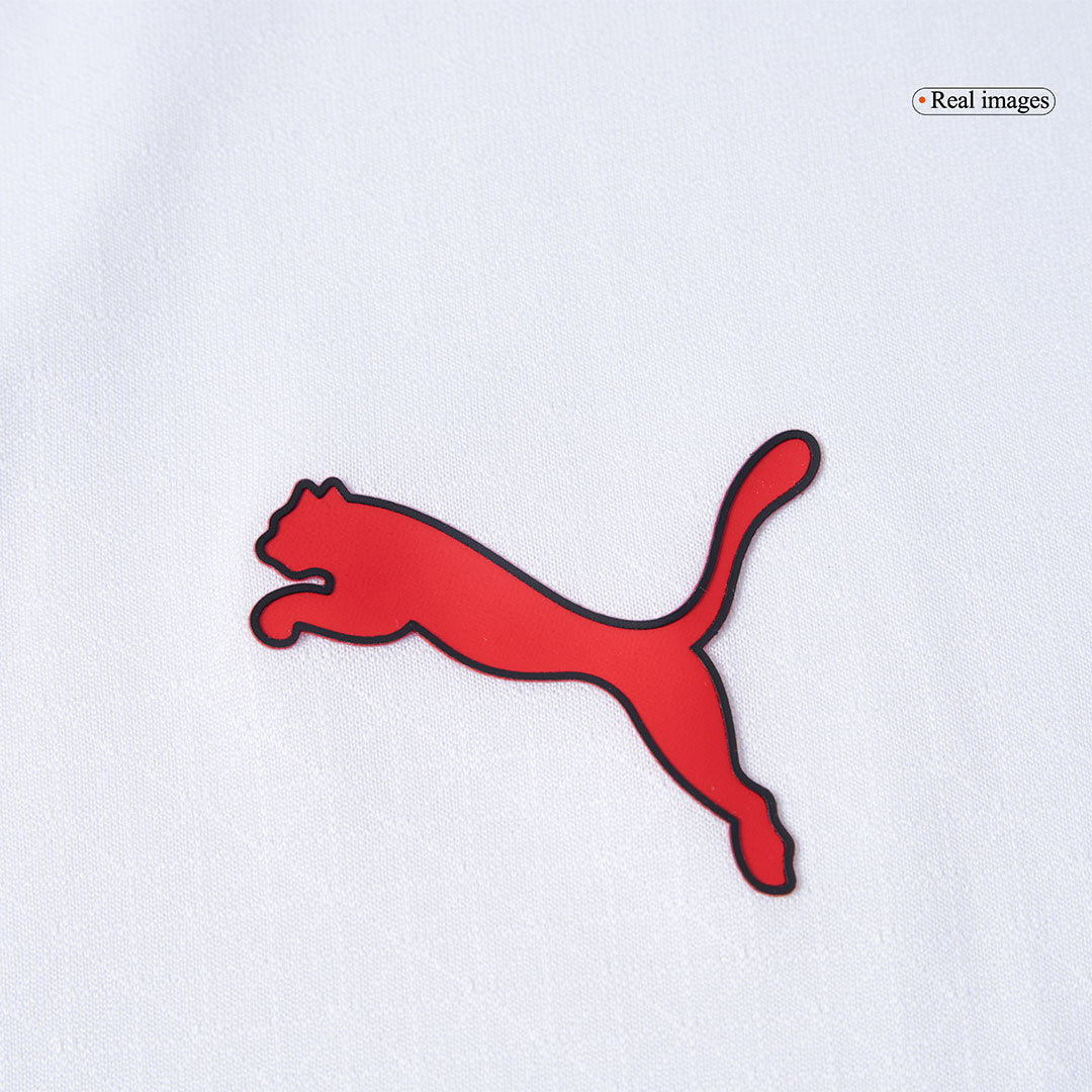 Het AC Milan Uitshirt 2025/26 is meer dan alleen een voetbalshirt – het is een statement van geschiedenis, trots en moderne stijl. Geïnspireerd door het legendarische tenue uit het seizoen 1981/82 keert de klassieke witte basis terug, met opvallende zwart-rode accenten op de schouders en mouwen. Het shirt krijgt een eigentijdse uitstraling met subtiele ingeweven graphics en, het meest opvallend, het krachtige Il Diavolo-logo dat het traditionele clubembleem vervangt.