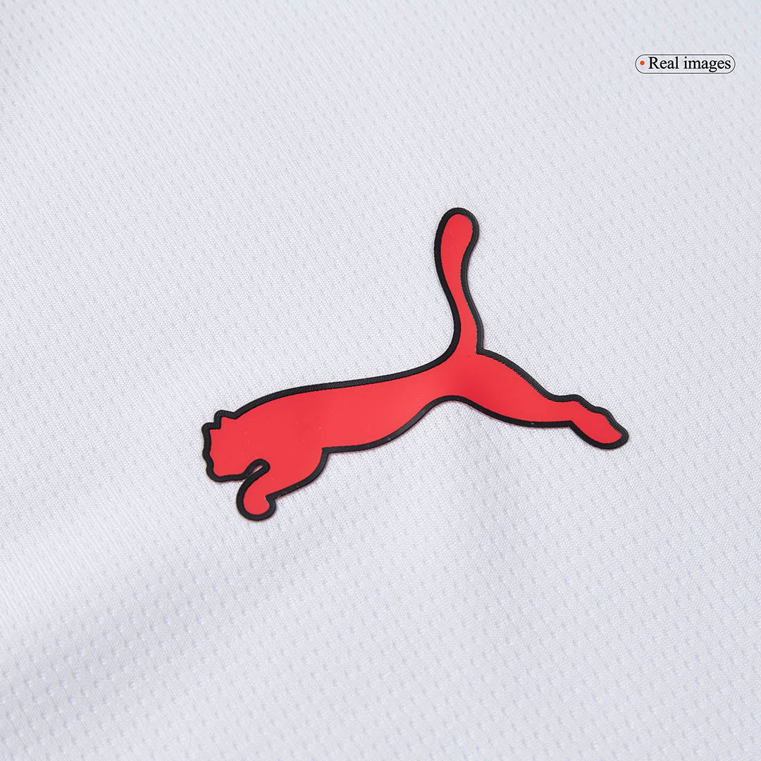 Het AC Milan Uitshirt 2025/26 is meer dan alleen een voetbalshirt – het is een statement van geschiedenis, trots en moderne stijl. Geïnspireerd door het legendarische tenue uit het seizoen 1981/82 keert de klassieke witte basis terug, met opvallende zwart-rode accenten op de schouders en mouwen. Het shirt krijgt een eigentijdse uitstraling met subtiele ingeweven graphics en, het meest opvallend, het krachtige Il Diavolo-logo dat het traditionele clubembleem vervangt.